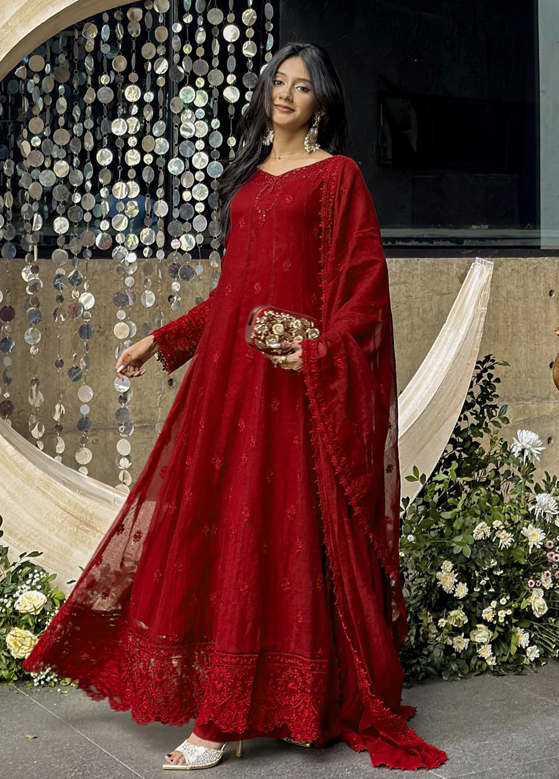 Shirt: Embroidered Khaddi Net Kalidaar With Lining Attached